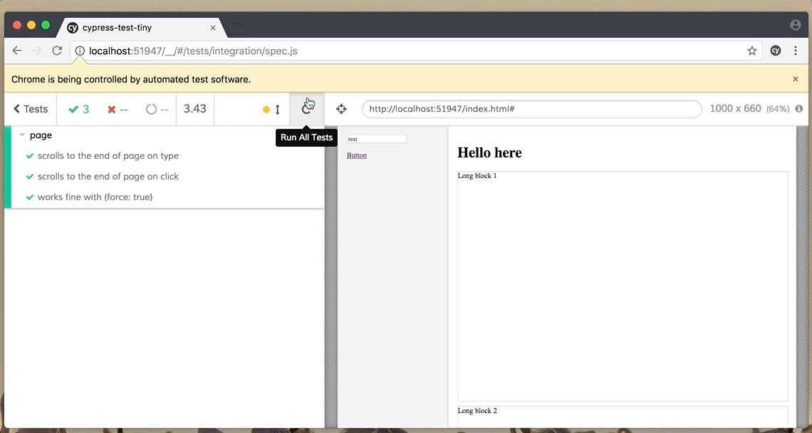 아래는 Cypress의 테스트 장면이다.