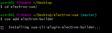 "vue create 프로젝트 이름" 명령어로 프로젝트를 생성했다면 프로젝트 내부로 이동해 electron-builder를 설치해준다.