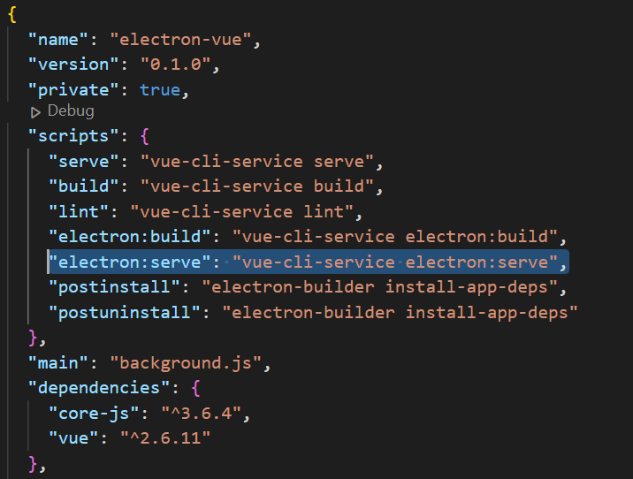 electron-builder 추가가 완료 되었다면, package.json에 아래 그림과 같이 Scripts 부분에 명령어가 추가 되었을 것이다.